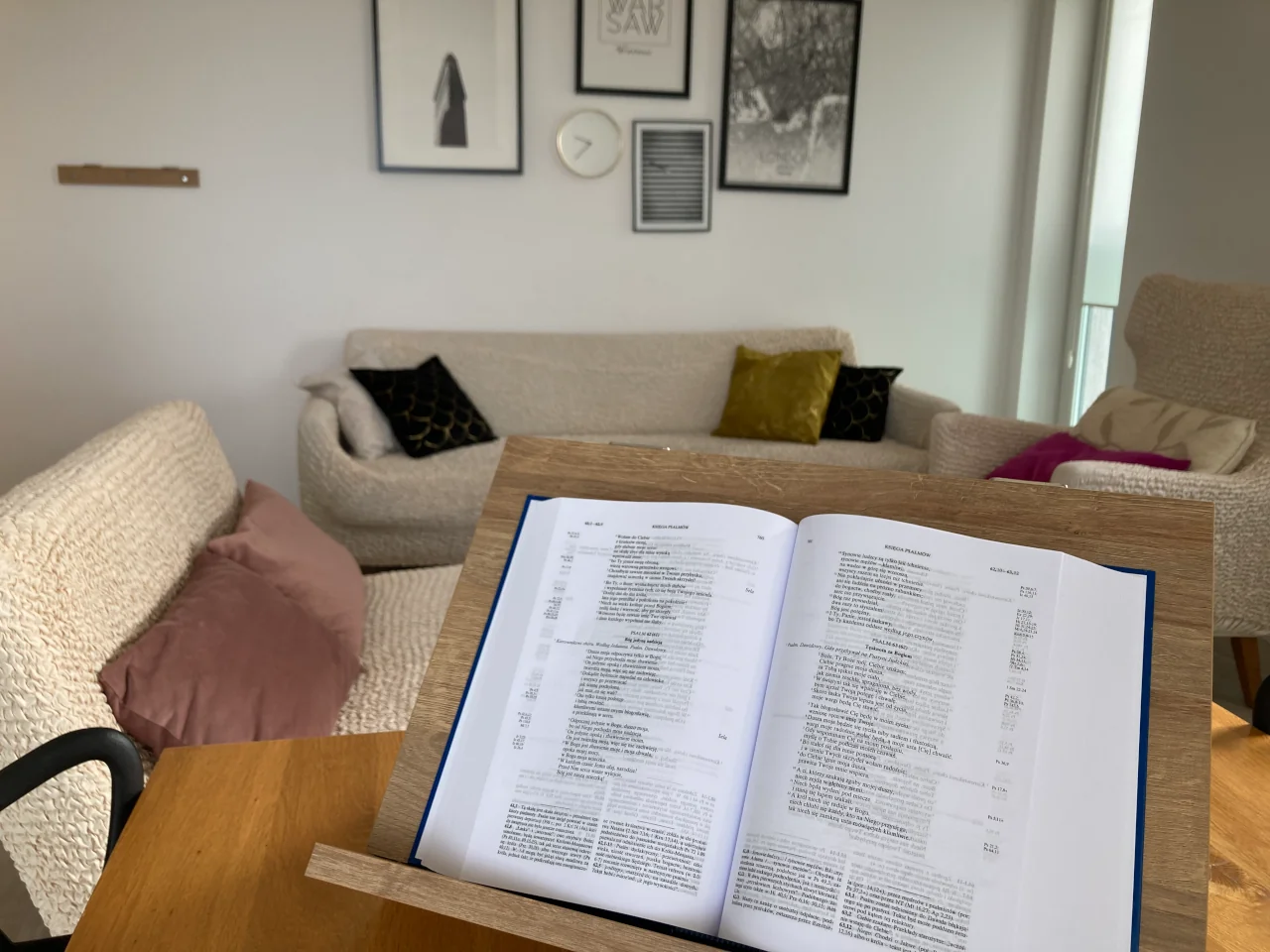 Pluteus w pozycji poziomej. Jako podstawka ustawiona na stole ułatwia czytanie w pozycji siedzącej.