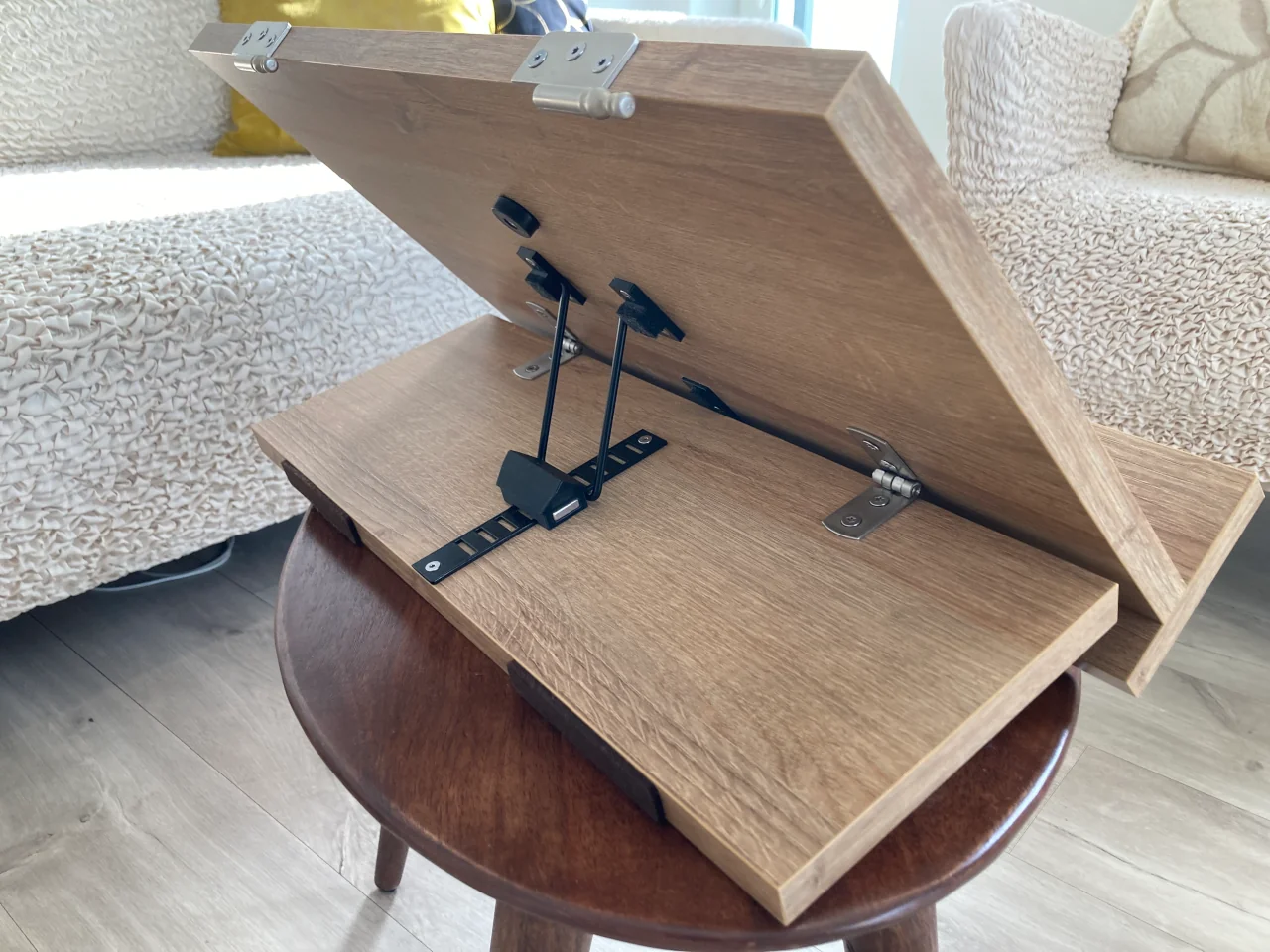 Mechanizm pozwala na ustawienie kąta nachylenia półki. Dzięki niemu masz możliwość dostosowania podstawki według swoich przyzwyczajeń i potrzeb.